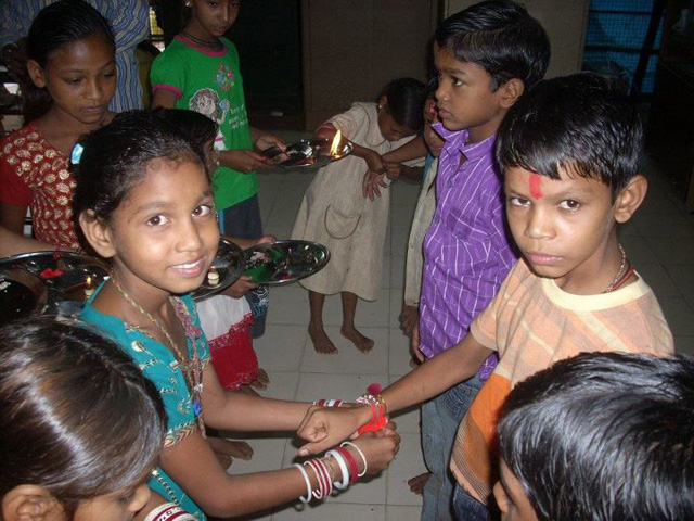 Raksha Bandhan is a festival that celebrates the relationship between brothers and sisters. The central ceremony involves tying of a rakhi (sacred thread) by a the sister on her brother's wrist. This symbolizes the sister's love and prayers for her brother's well-being, and the brother's lifelong vow to protect her